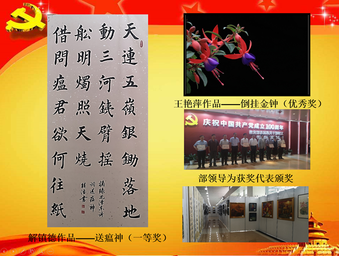經(jīng)過(guò)專(zhuān)家評審,公司退休干部解鎮德同志獲得書(shū)法類(lèi)“一等獎”,王艷萍同志獲得攝影類(lèi) “優(yōu)秀獎”,作品自6月11日開(kāi)展儀式起進(jìn)行展出。